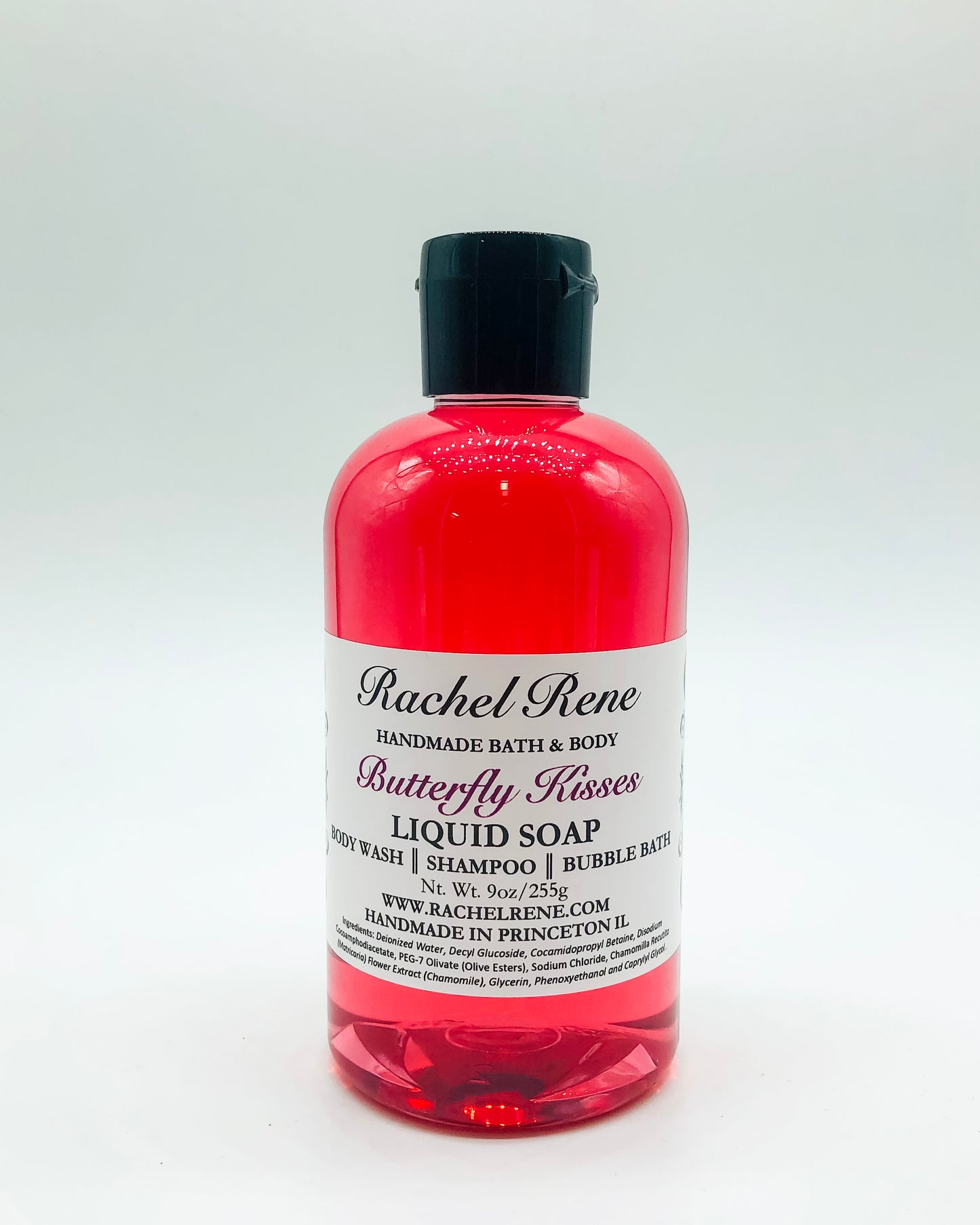 Ingredients: Aqua, Potassium Oleate*, Potassium Cocoate*, Lauryl Betaine, Glycerin*, Benzyl Alcohol, Potassium Citrate, Potassium Palm Kernelate, Decyl Glucoside, Palm Kernal Acid, Skin Safe Colorant and Fragrance. (*Derived from Oraganic Sunflower Oil)