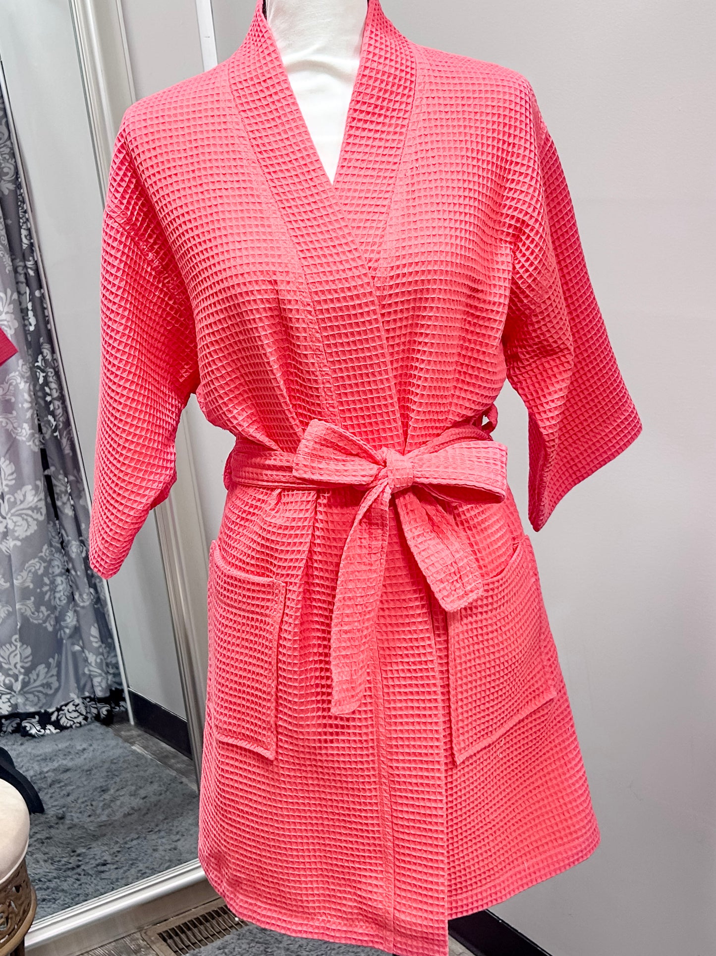 Our long waffle robe is an ideal spa, cover-up or travel robe with a unisex fit. A cotton waffle weave of 60% natural cotton and 40% polyester makes it comfortable to lounge and move freely in. Perfect to slip on after a spa treatment, sauna, or just sitting by the pool, the robe’s softness delivers the ultimate in pampering.