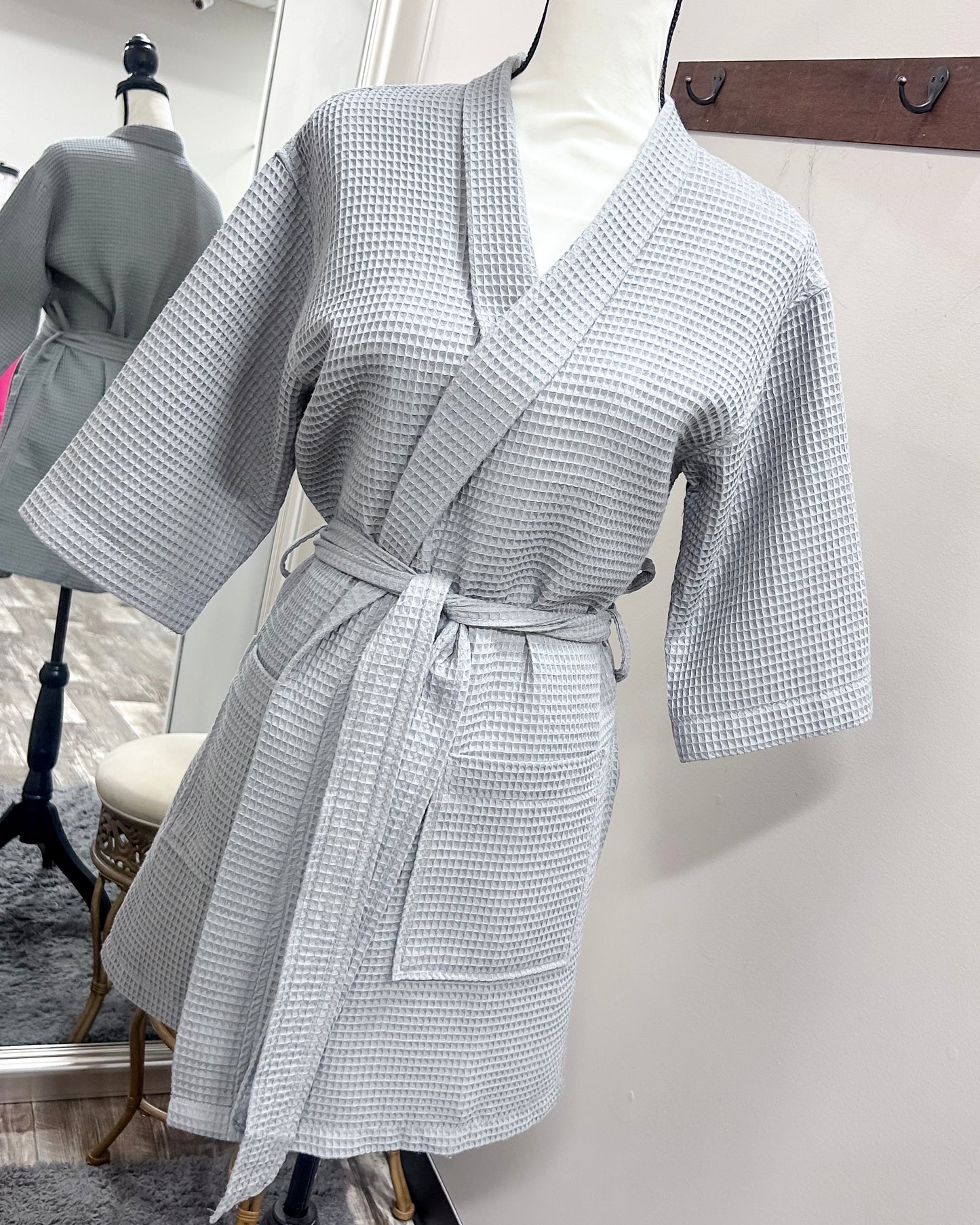 The lightweight material and durable double stitching let each waffle robe hold up after repeated washes - use it for time after time without worry. It's fabric is easy to care for: just machine wash in cool water, then tumble dry on low heat. The material dries quickly so you have it back on the hook in no time. With every wash, the robe remains absorbent and comfortable. Each long waffle robe features a self-tie wrap belt, tailored collar, plus two large pockets.