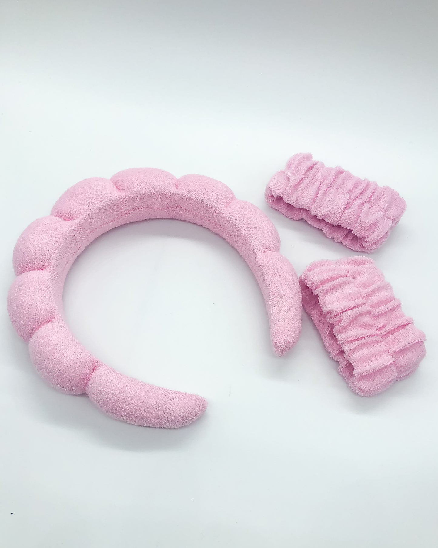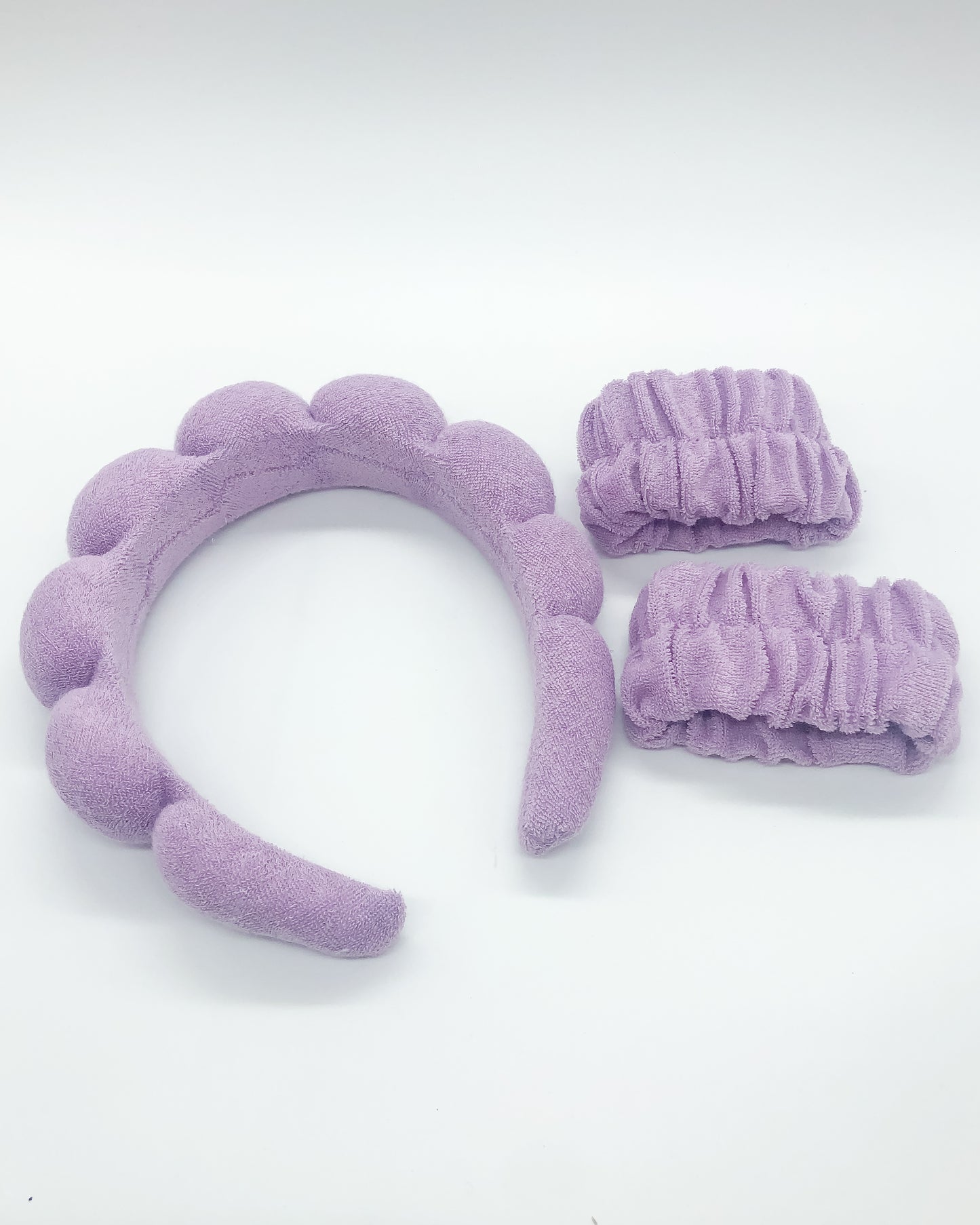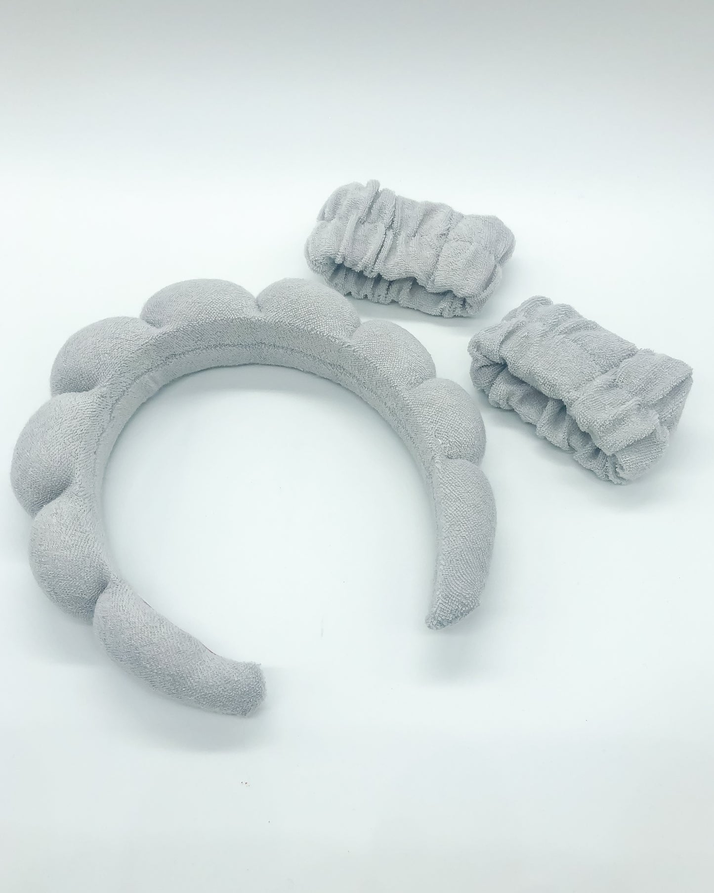Dry me a river. Designed to keep your hair back and shielded from water, skincare and makeup, this soft terrycloth headband comes with two fluffy wristbands to keep your arms nice 'n dry while washing or rinshing!