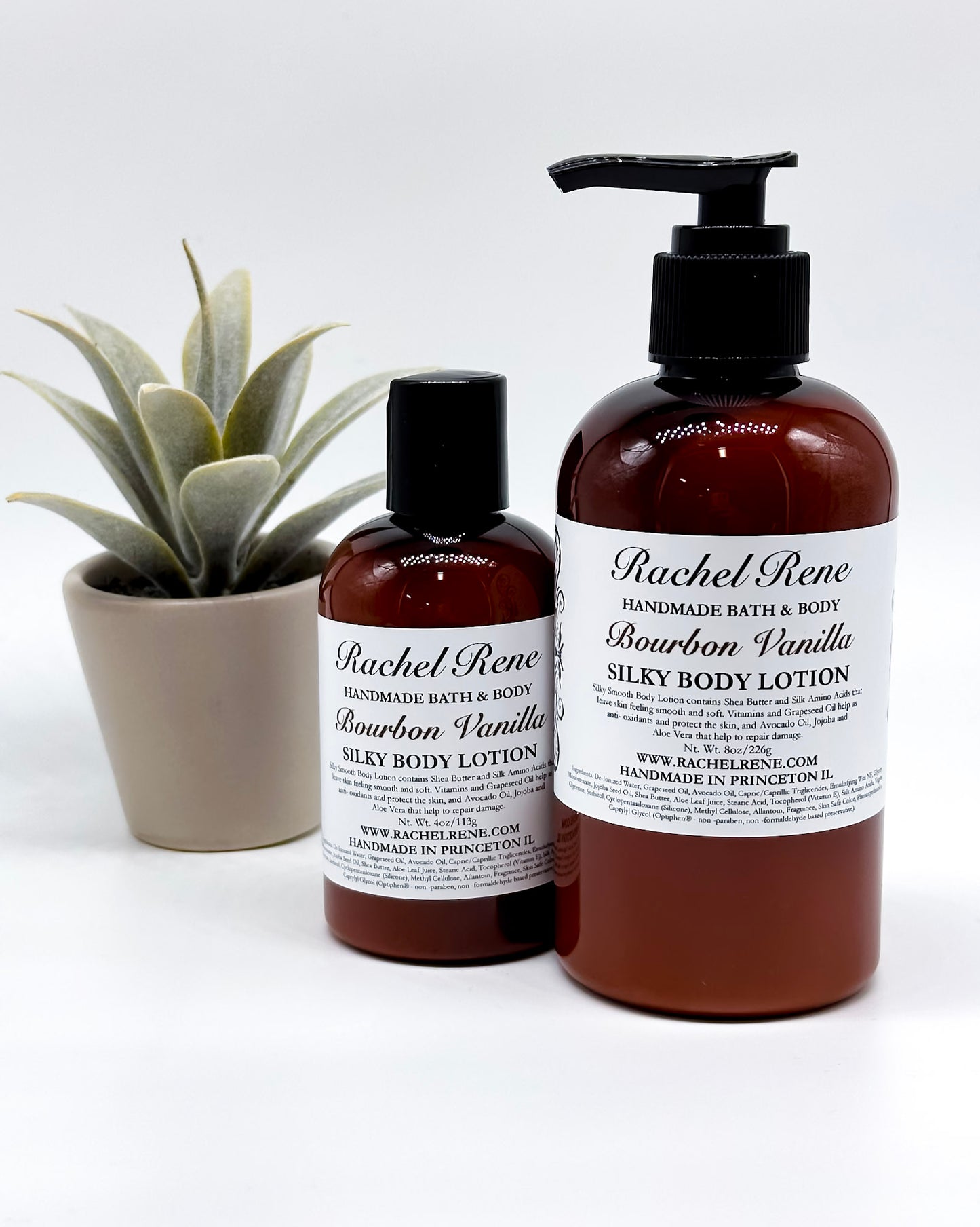 This rich body lotion is perfect for everyday use and for all skin types. It has a fast-absorbing formula that won't leave your hands or body greasy and it doesn't clog pores. A little bit goes a long way, so it will LAST! Free of parabens!