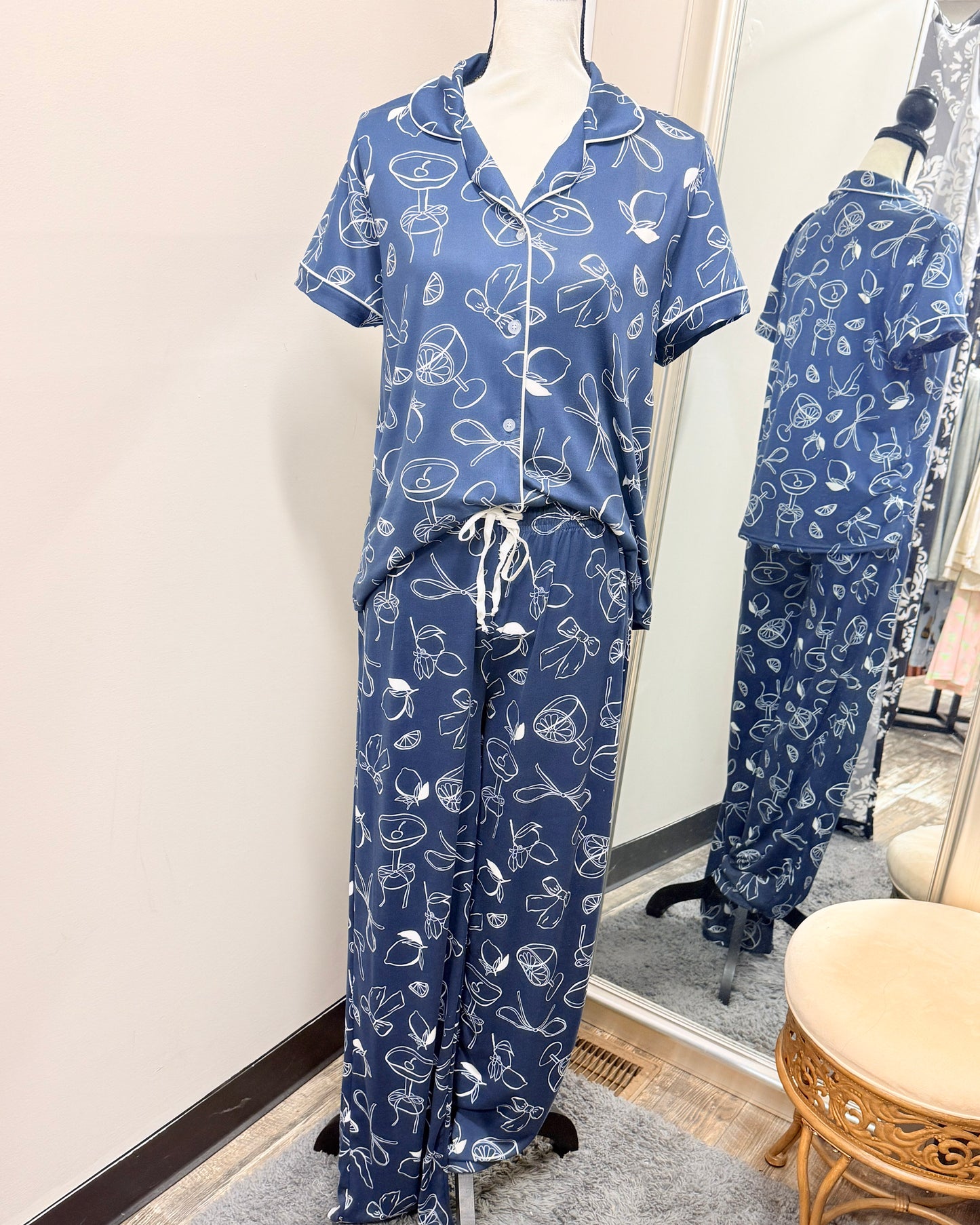 Comfy relaxed fit with buttons down the front. Complete the look with matching pants!
