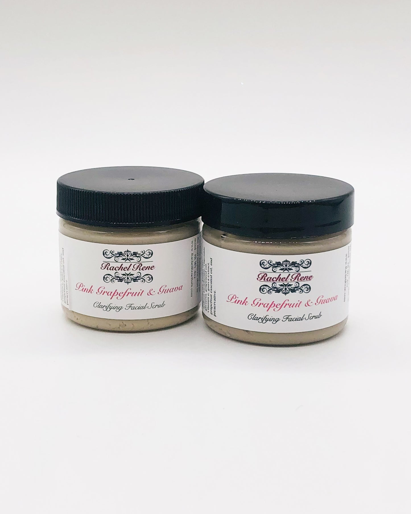 This all-natural facial scrub contains Kaolin clay, a fluffy clay extremely *rich* in nutrients and minerals. It feeds your skin and helps to keep the nose from looking shiny, too! You will also find grapeseed oil, Vitamin E and guava extract; a potent fruit-based antioxidant that rejuvenates dull skin, leaving your complexion SUPER smooth and glowing! Guava is very rich in Vitamins, helping prevent oxidation of cells and giving this scrub an anti-aging property. It also contains grapefruit essential oil, which is an excellent astringent oil with a fresh citrus scent.