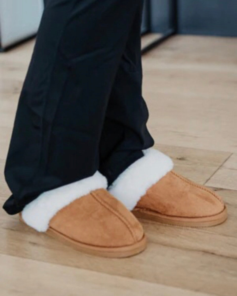 Faux Fur Slippers - Chestnut
