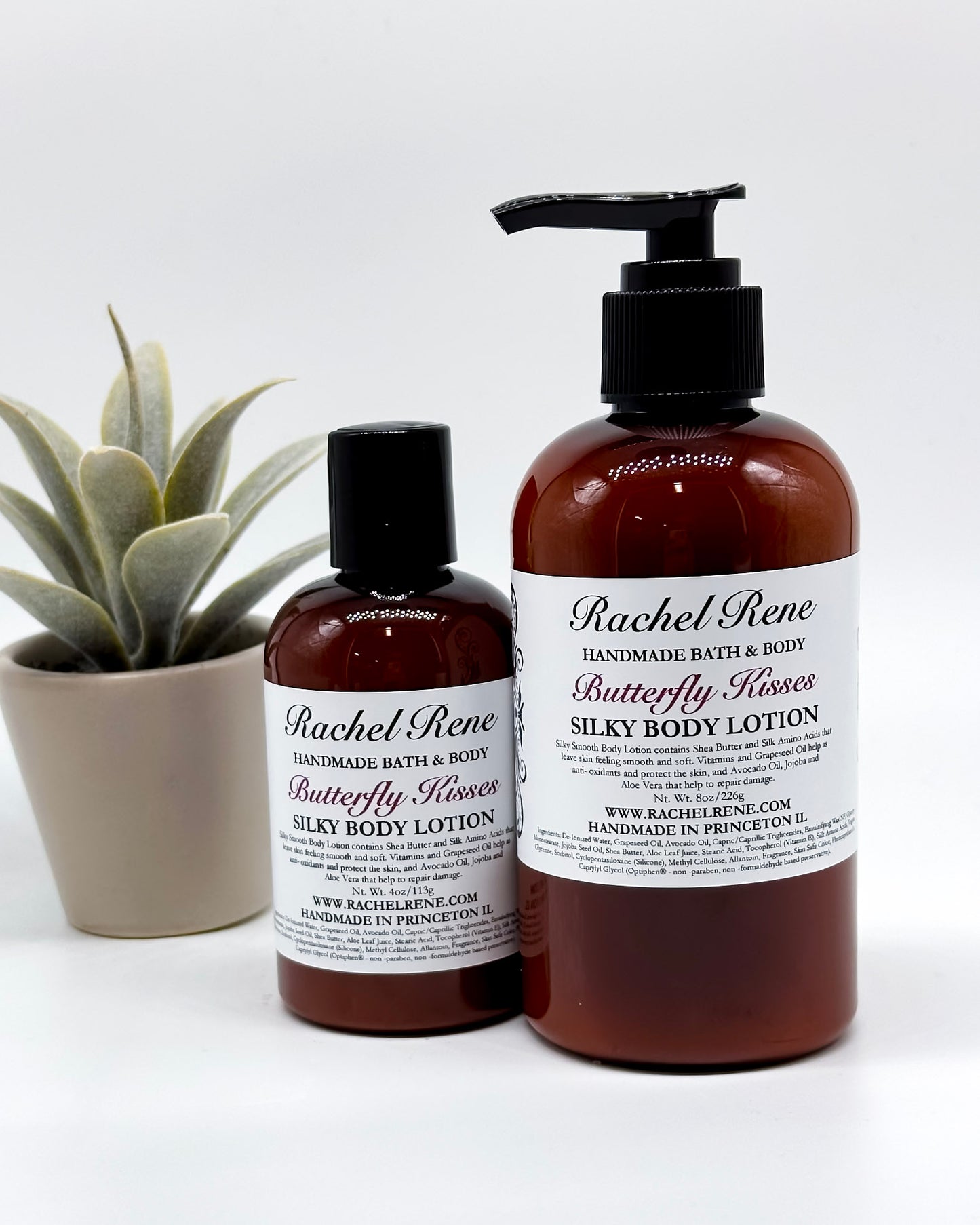 This rich body lotion is perfect for everyday use and for all skin types. It has a fast-absorbing formula that won't leave your hands or body greasy and it doesn't clog pores. A little bit goes a long way, so it will LAST! Free of parabens!