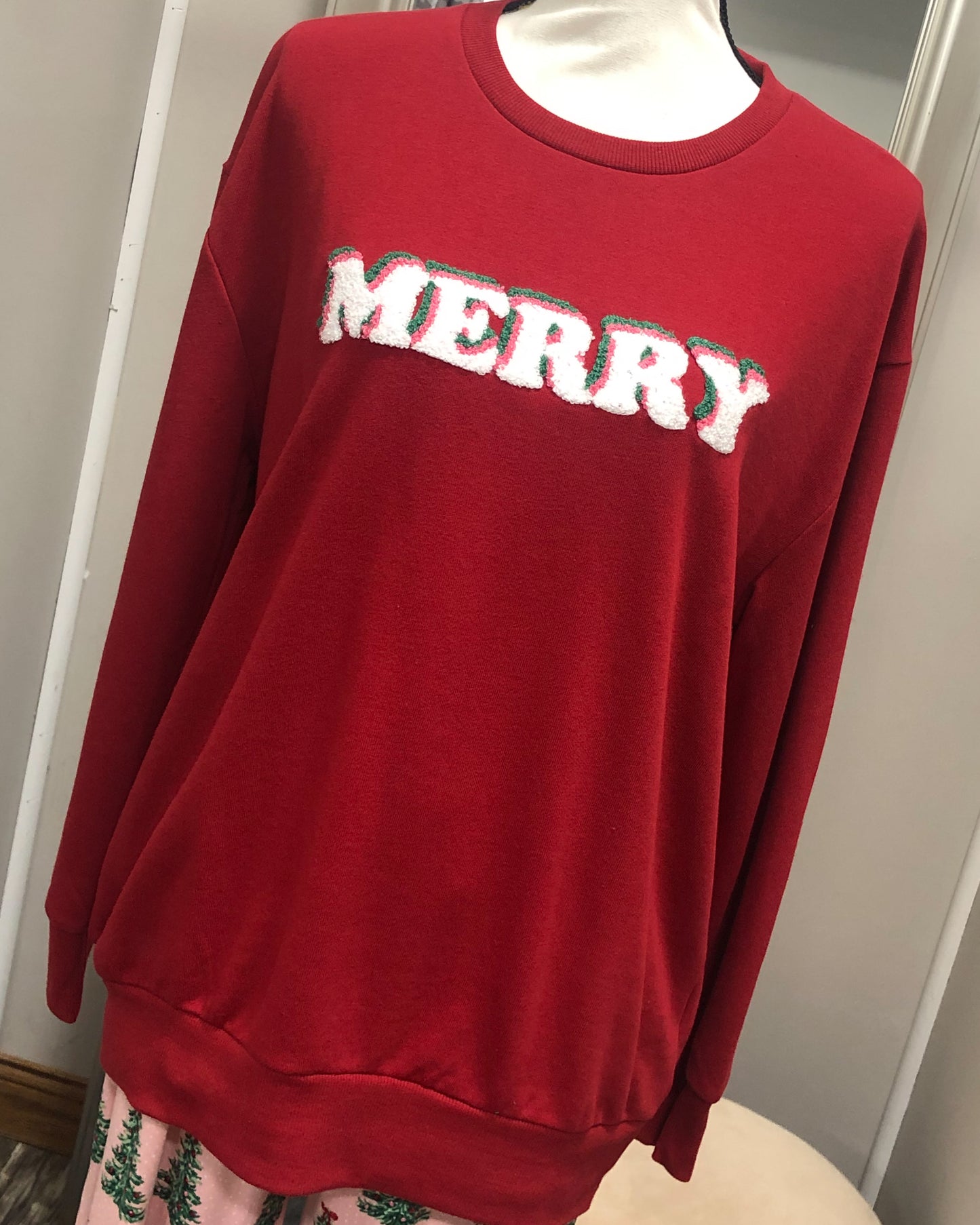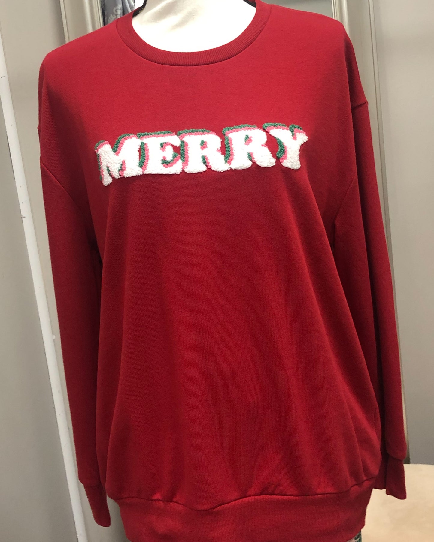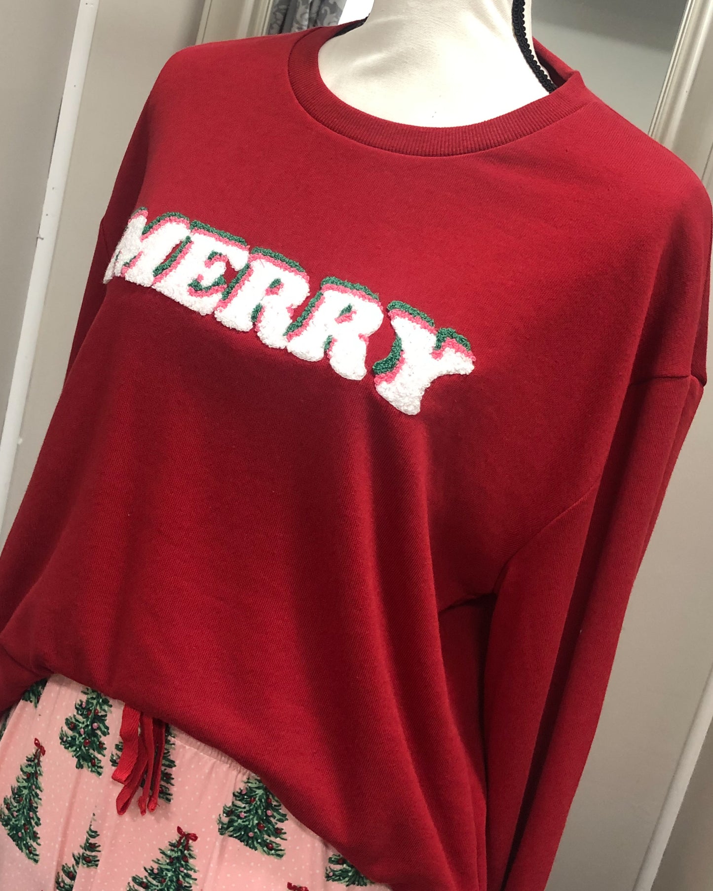 This sweatshirt is so comfy and full of holiday cheer! Its oversized so it fits like a dream. Crewneck for the perfect lounge top! Goes great with jeans or pajama pants!
