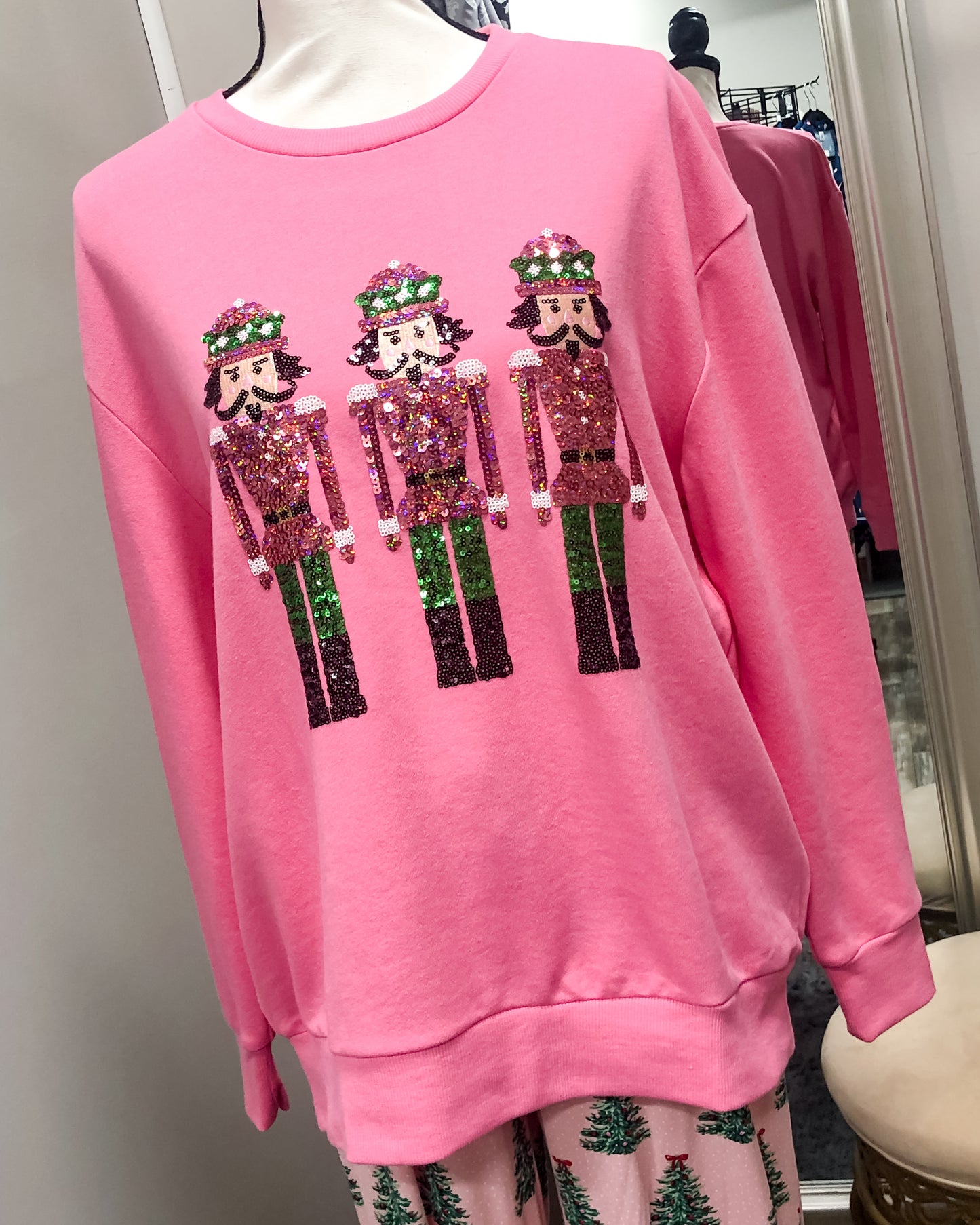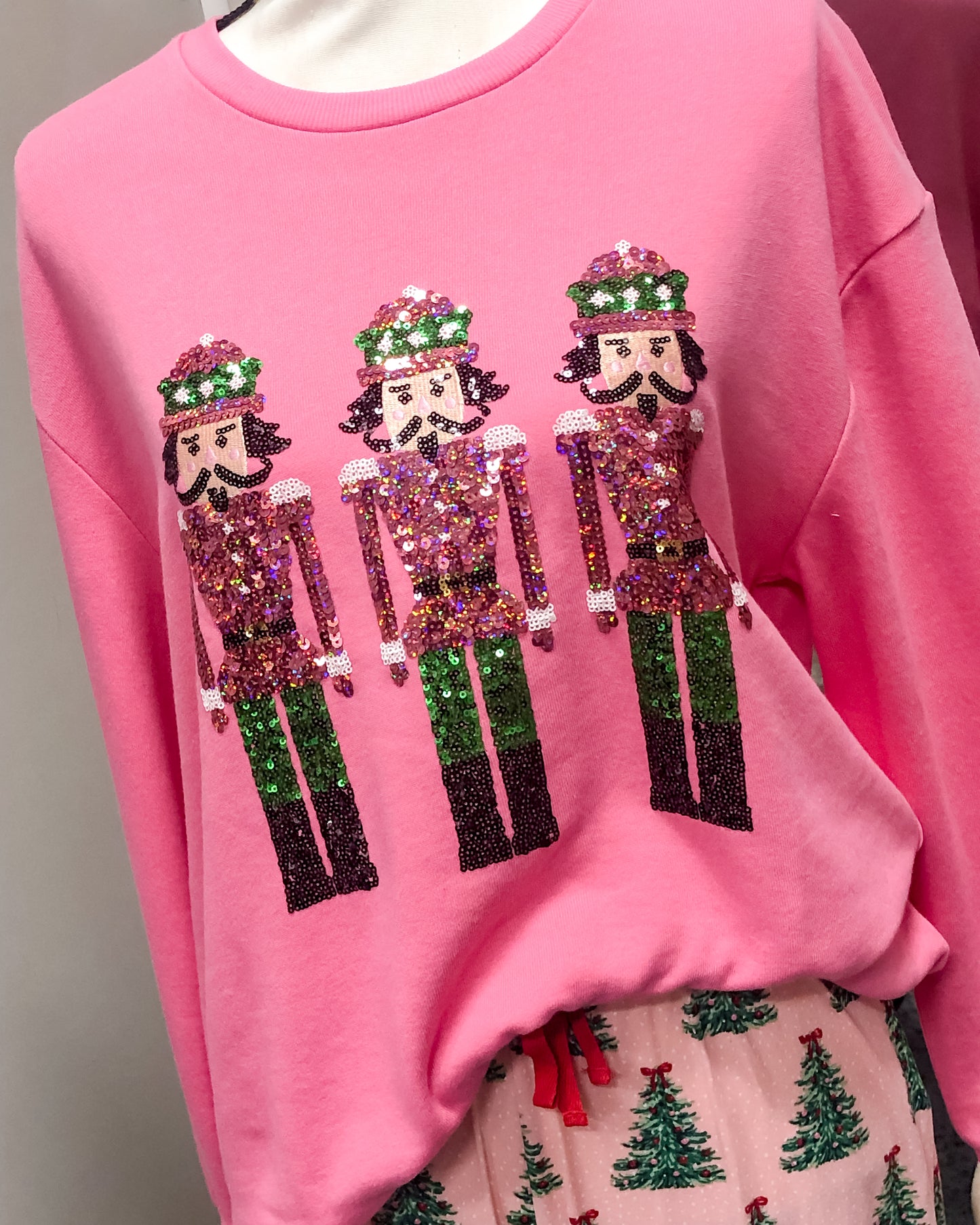 This sweatshirt is so comfy and full of holiday cheer! Its oversized so it fits like a dream. Crewneck for the perfect lounge top! Goes great with jeans or pajama pants!