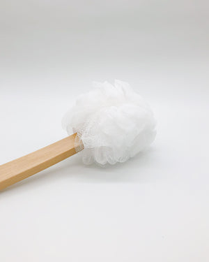 This long handled bath pouf is perfect for getting your favorite 3 in 1 Liquid Soap in those hard to reach places!