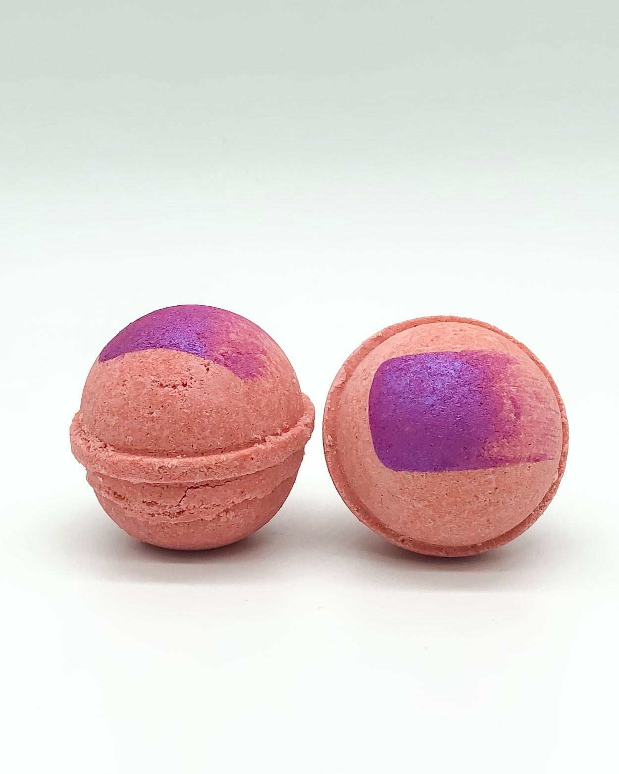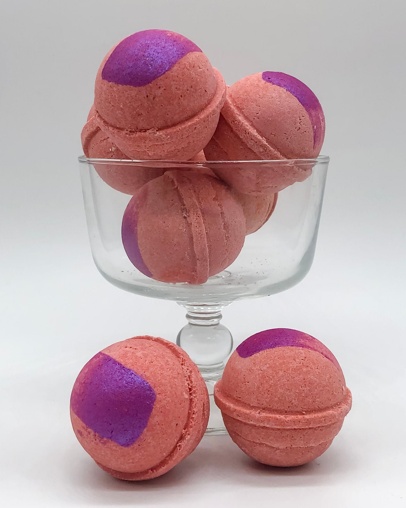 Ingredients: Baking Soda, Citric Acid, Corn Starch, Kaolin Clay, Shea Butter, Olive Oil, Fragrance and skin safe colorant. Each bomb comes individually wrapped and labeled.