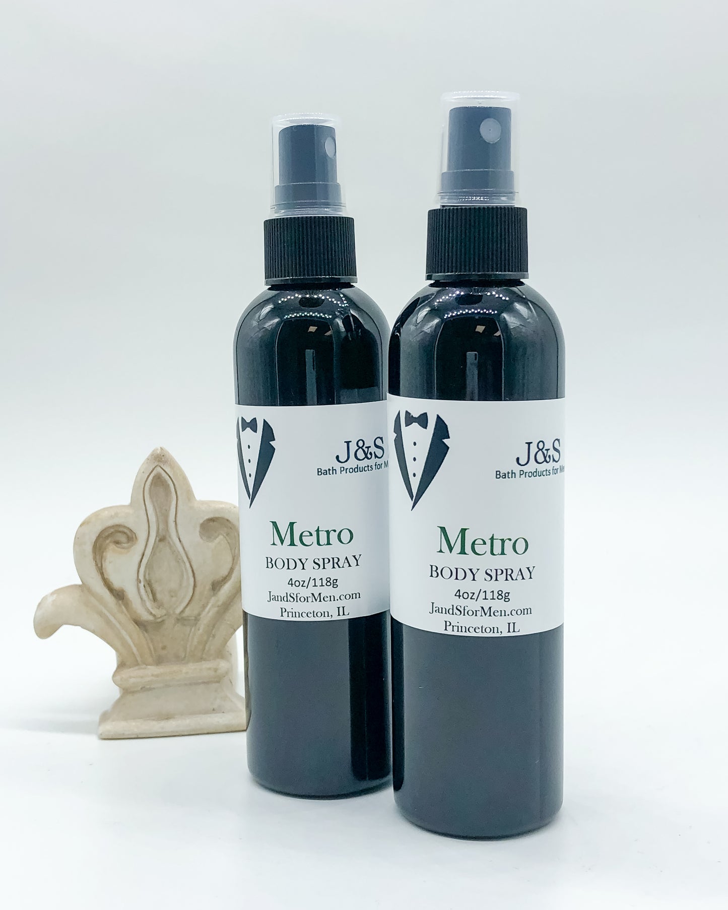 Handy 4oz bottles to keep in your car, gym locker or desk drawer for a quick refresher. Give it a couple shakes and then spray it on after a shower or anytime for a pick-me-up on your hair, face and body whenever you need! Layer it over your favorite J&S FOR MEN soap or body wash for a longer lasting scent!