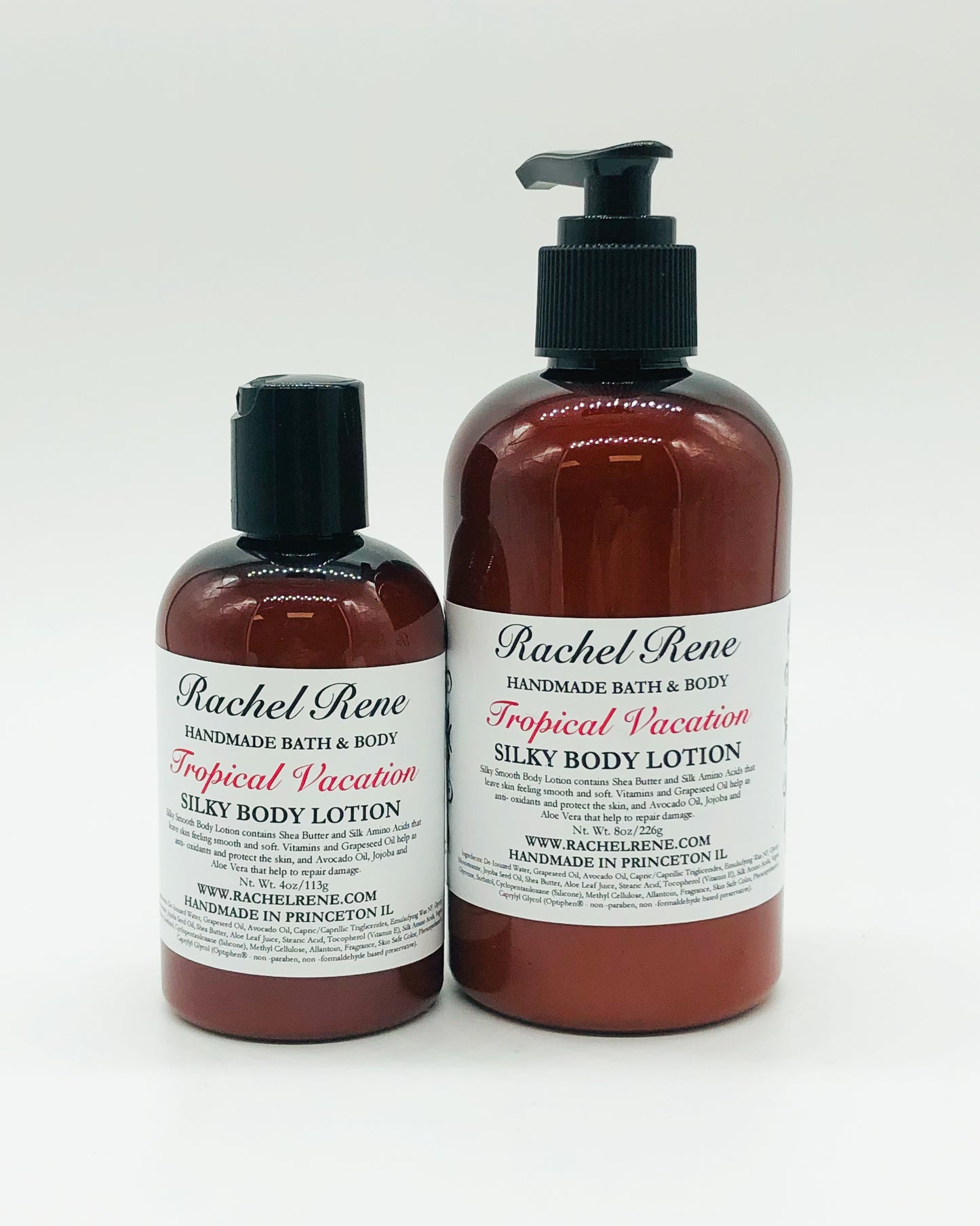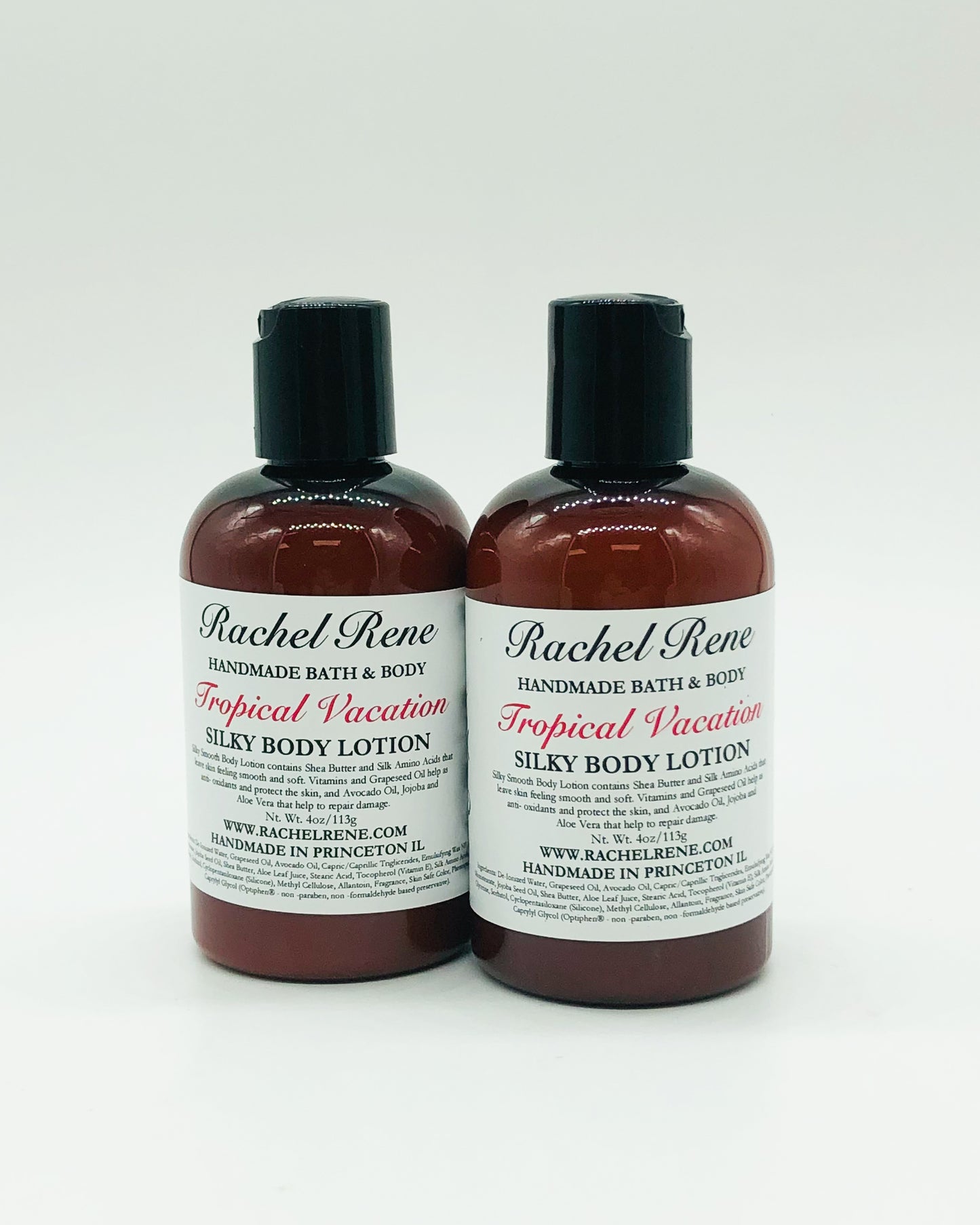 This rich body lotion is perfect for everyday use and for all skin types. It has a fast-absorbing formula that won't leave your hands or body greasy and it doesn't clog pores. A little bit goes a long way, so it will LAST! Free of parabens!