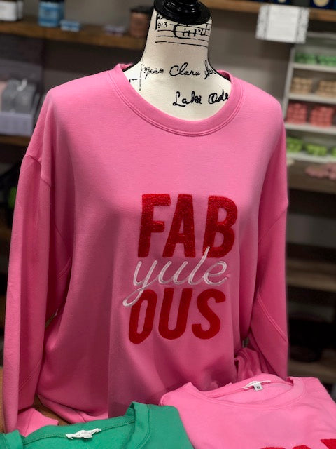Regular price $32.00How cute is our FAB-YULE-OUS Jules Sweatshirt?! It’s lightweight and super soft with the perfect sleeve length we all crave. This sweatshirt is sure to be your new holiday favorite!