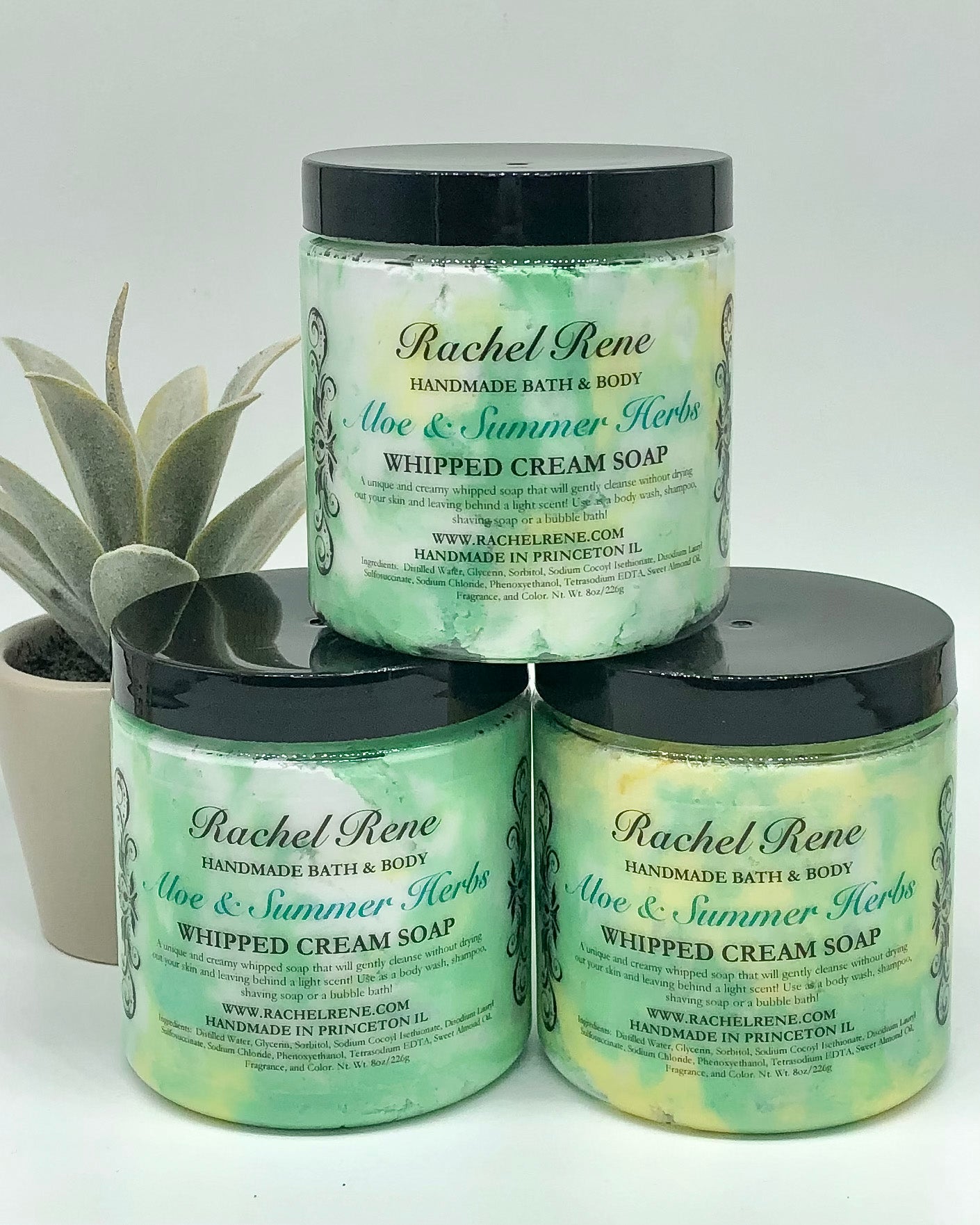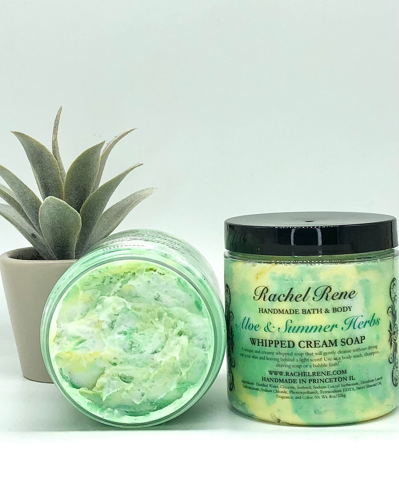 Our Whipped Soaps are thick, fluffy and whipped to perfection so you get the most of your jar! I take special care to not over whip the "batter" so that you only need a small amount to create enough lather to wash you entire body!