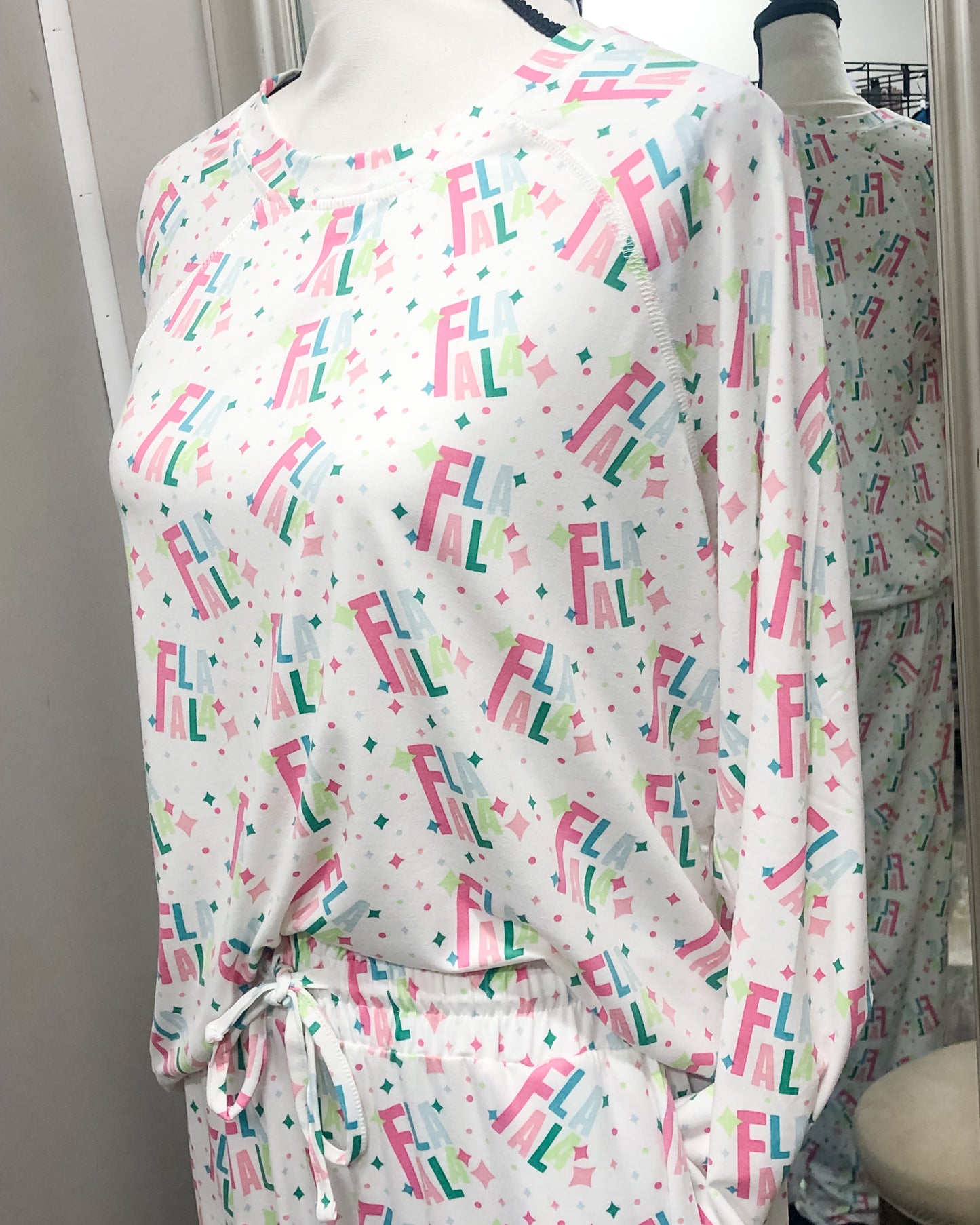 The most comfortable fabric in a festive design just for this holiday season! Literally this lounge set feels like a buttery soft hug. You'll be so festive and cozy around the tree this holiday season!