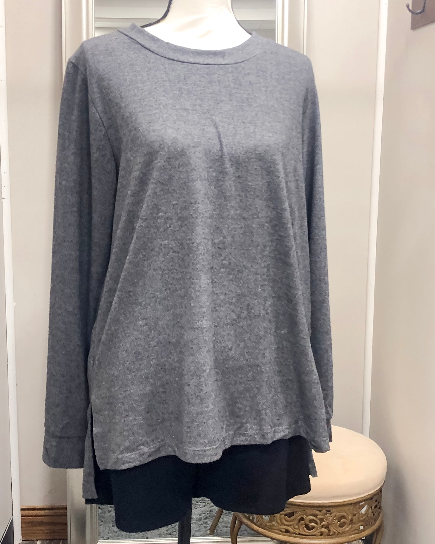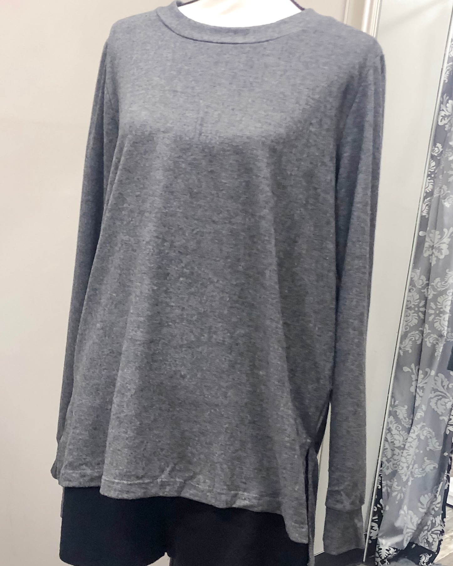 Brushed Knit Round Neck Raglan Sleeve Top - Charcoal
