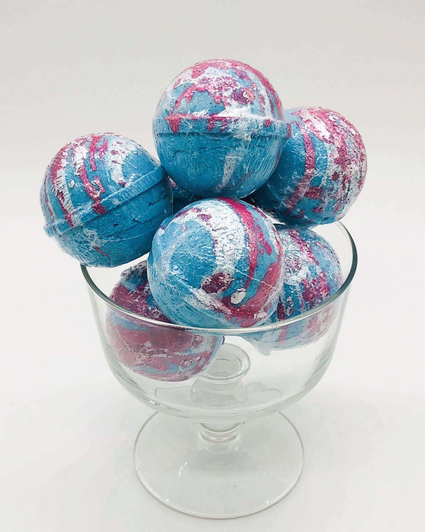 Ingredients: Baking Soda, Citric Acid, Corn Starch, Kaolin Clay, Shea Butter, Olive Oil, Fragrance and skin safe colorant. Each bomb comes individually wrapped and labeled.
