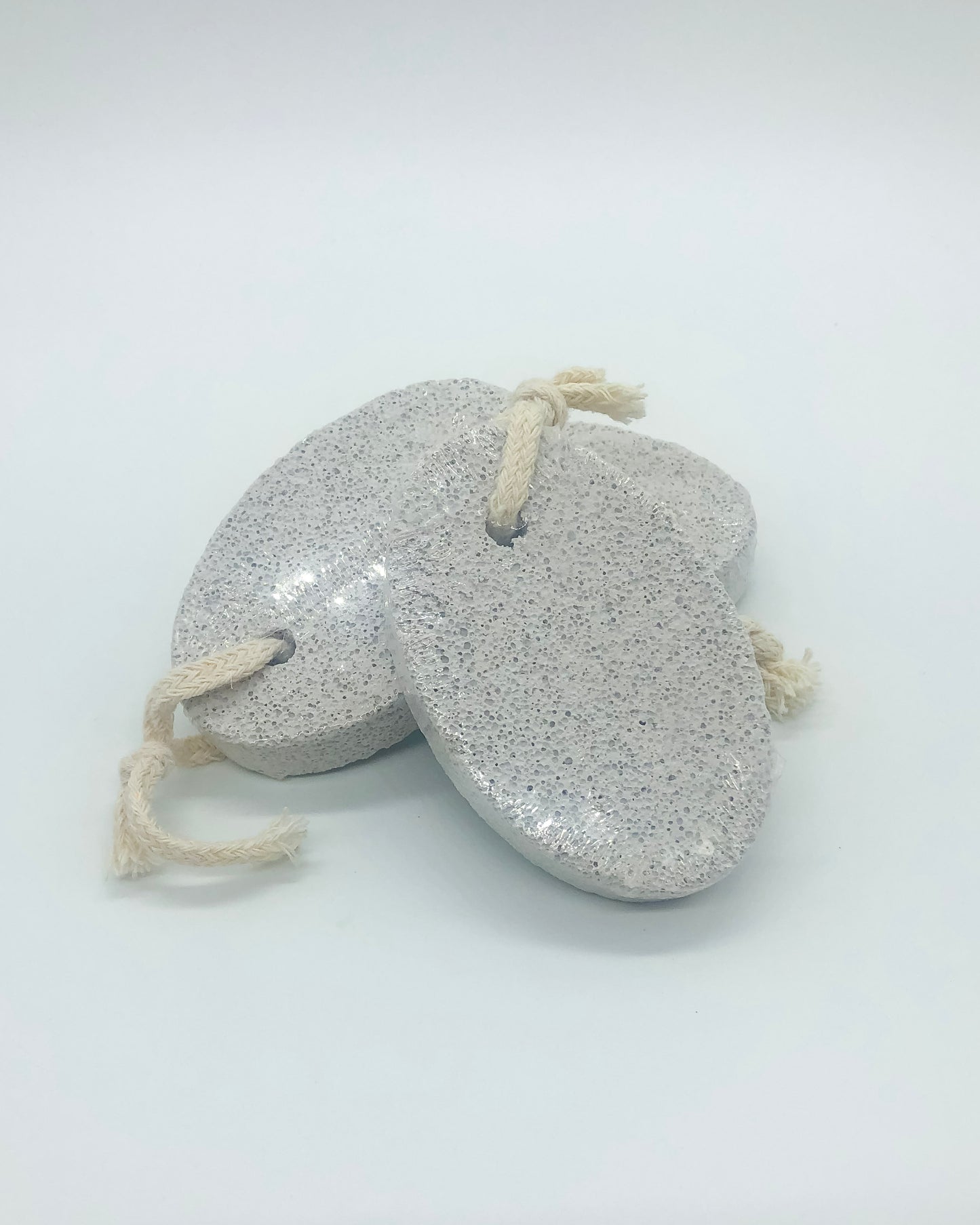 Buff away rough spots and dead skin with a pumice store! Fits perfectly in your hand for easy use. Hanging loop for easy storage.