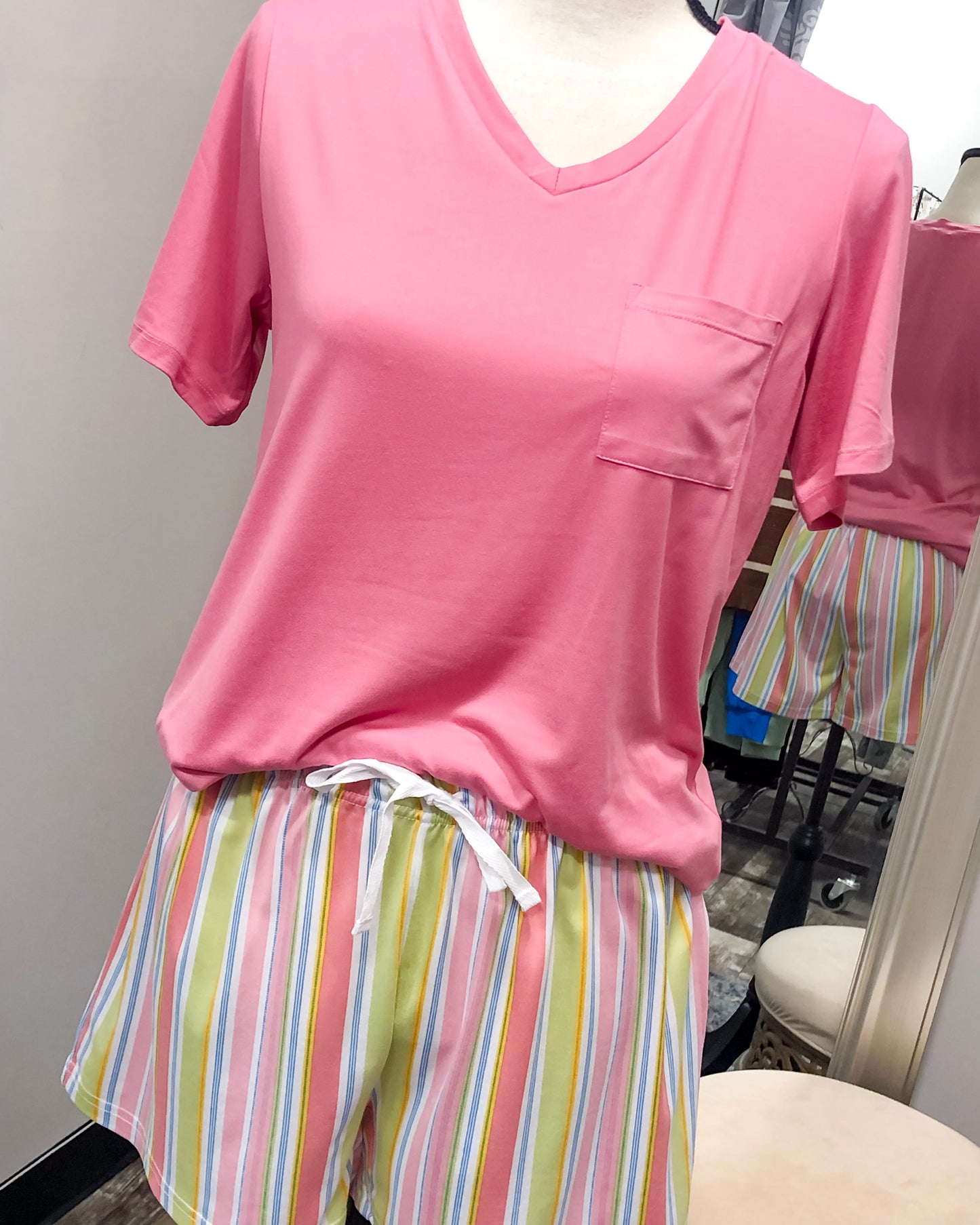 Highlands V-neck Pocket Tee - Pink