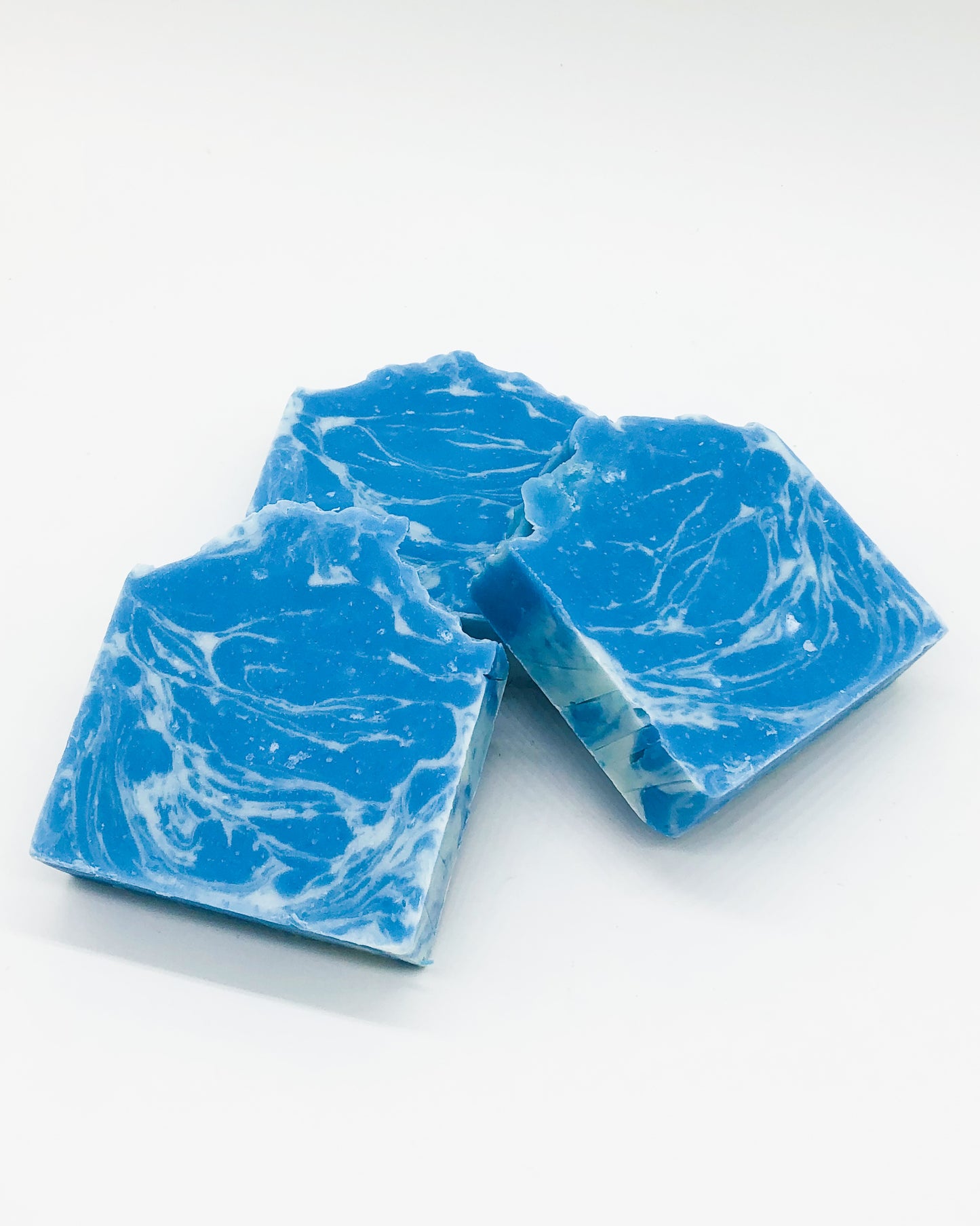 Made with Water, Sweet Almond Oil, Coconut Oil, Shea Butter, Avacado Oil, Sodium Hydroxide, Palm Kernel Oil, Sunflower Oil, Castor Oil, Fragrance and/or Essential Oils and colorant.
