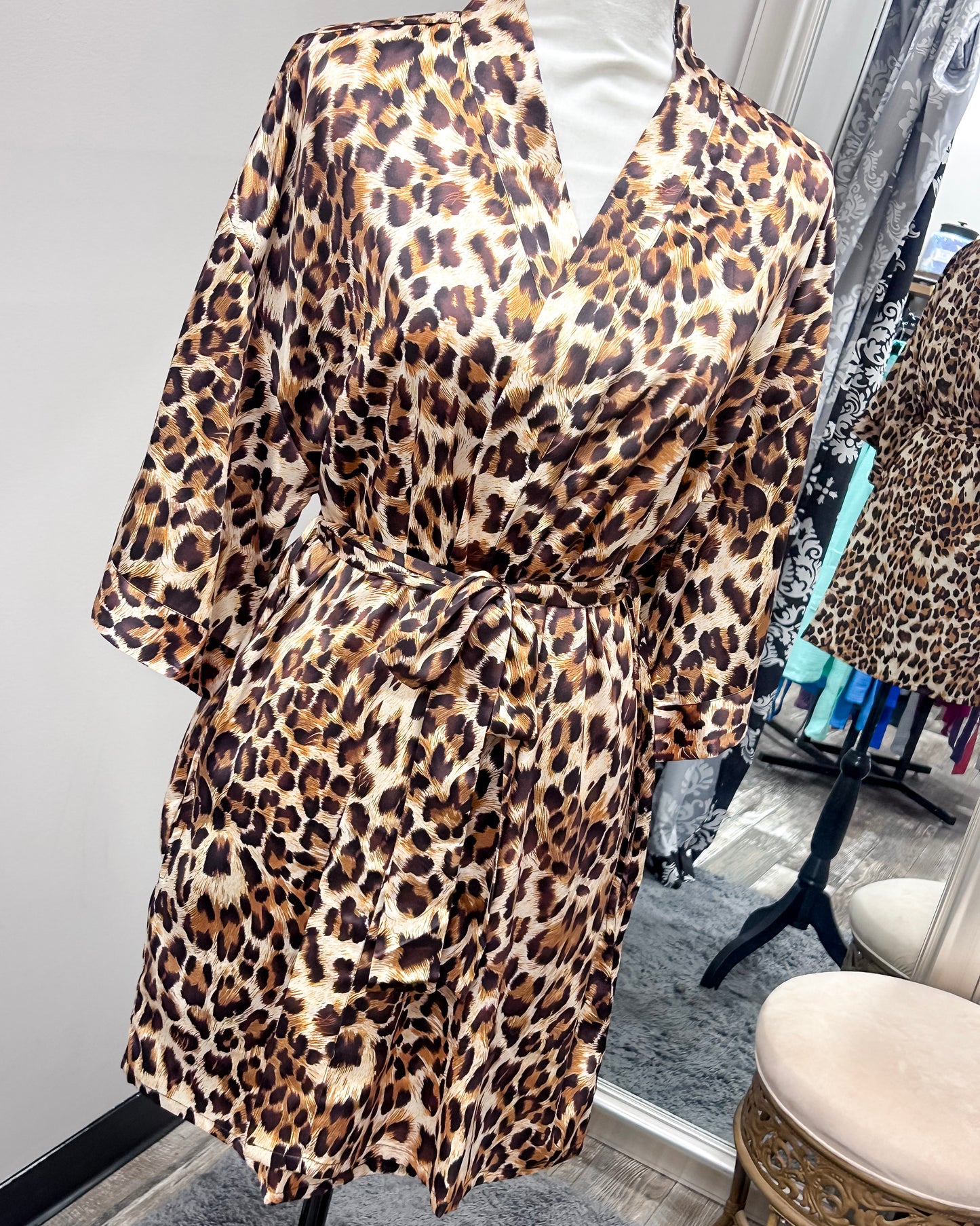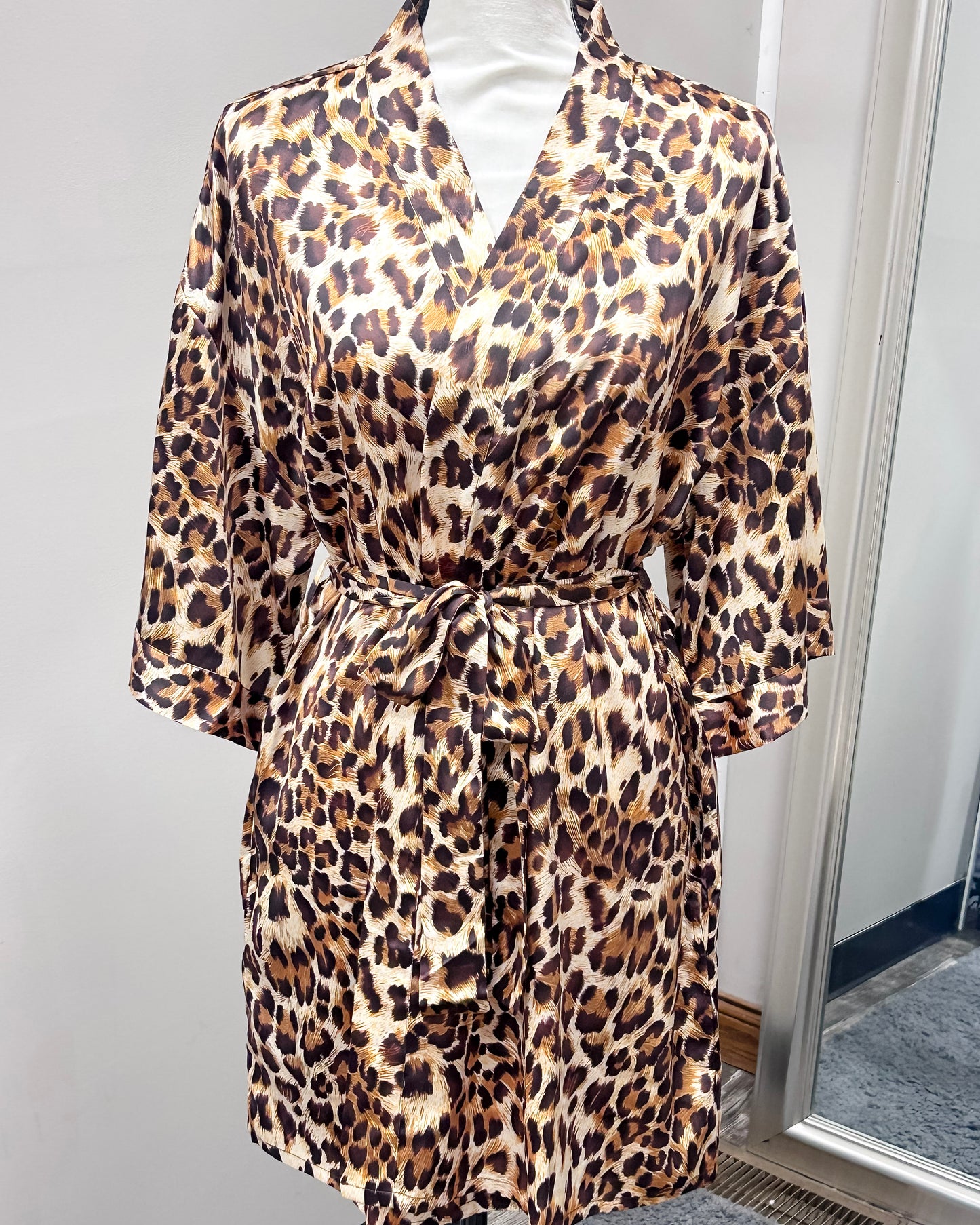 Our robe’s premium 95% Polyester, 5% Spandex fabric is a perfect combination for durability and low maintenance. Care instructions are easy, as you can machine wash the robe in cold water then tumble dry on low. Every time it’s washed, the robe keeps its soft, silky luxury. A short satin robe in kimono style, each garment features a tailored collar, self-tie wrap belt, an inside tie and a pocket.