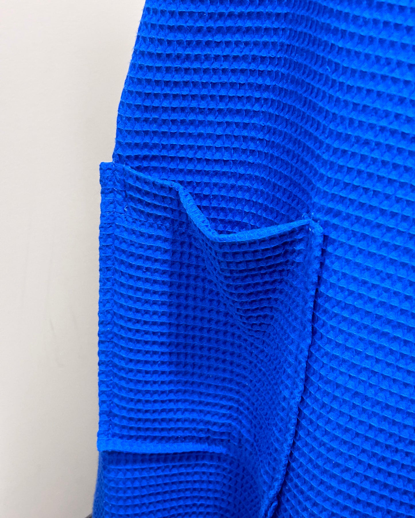 The wrap’s durable fabric of 60% Cotton and 40% Polyester means the material breathes nicely and keeps you comfortable but cool. Don’t worry about maintenance either, because it’s easy to machine wash and dry -- wash after wash, your spa waffle wrap will hold up. The design includes a large pocket for keys, wallet, phone and other small items.